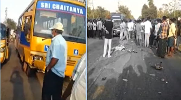 తెర్లాం: విజయనగరం జిల్లాలో మంగళవారం సాయంత్రం ఘోర రోడ్డు ప్రమాదం జరిగింది. తెర్లాం మండలం టెక్కలివలస వద్ద జాతీయ రహదారిపై ఓ ప్రైవేటు పాఠశాల బస్సు అదుపు తప్పి ద్విచక్రవాహనాన్ని ఢీకొంది. ఈ ప్రమాదంలో ద్విచక్రవాహనంపై ప్రయాణిస్తున్న ముగ్గురు చిన్నారులు అక్కడికక్కడే మృతి చెందగా, మరో ఇద్దరికి గాయాలయ్యాయి. ప్రమాదం జరిగిన సమయంలో ద్విచక్రవాహనంపై ఐదుగురు ప్రయాణిస్తున్నారు. సమాచారం తెలుసుకున్న పోలీసులు ఘటనాస్థలికి చేరుకుని సహాయక చర్యలు చేపట్టారు. గాయపడిన ఇద్దరినీ రాజాం ఆసుపత్రికి తరలించి చికిత్స అందిస్తున్నారు. బాధితులంతా ఒకే కుటుంబానికి చెందిన వారని, సమీపంలో ఓ గ్రామంలో జాతరకు వెళ్తుండగా ఈ ప్రమాదం జరిగిందని పోలీసులు తెలిపారు. మృతి చెందిన చిన్నారులు సిద్దూ(9), హర్ష (6), రుషి(6)గా గుర్తించారు.